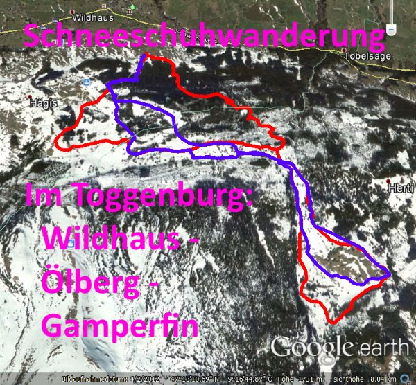 Schneeschuhweg im Spätwinter ab Ende Februar Wildhaus - Ölberg - Gamperfin.